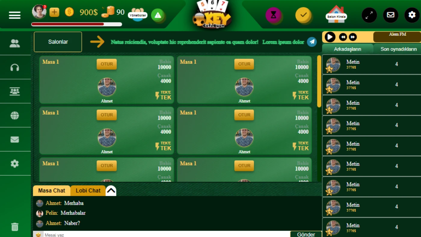 Gelişmiş Online Okey + Çanak oyun yazılımı